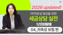 신현진 FP전문성 향상을 위한 세금상담 실전 보험세제_01_보장성 보험 편(2602) 교안다운 강의포인트 1. 보장성 보험의 세법상 정의 2. 보장성 보험 가입 고객의 관심사는? 3. 단체보험 계약이란? 4. 실전 고객 상담 화법 목록 FP전문성 향상을 위한 세금상담 실전 보험세제_02_연금계좌 편(2502)FP전문성 향상을 위한 세금상담 실전 보험세제_03_연금계좌 편(2602)FP전문성 향상을 위한 세금상담 실전 보험세제_03_저축성보험 편(2502)FP전문성 향상을 위한 세금상담 실전 보험세제_04_저축성 보험 편(2602)FP전문성 향상을 위한 세금상담 실전_01_종합소득세(사업자편)(1911)FP전문성 향상을 위한 세금상담 실전_02_종합소득세(근로자 편)(1911)FP전문성 향상을 위한 세금상담 실전_03_저축성보험 비과세(1911)FP전문성 향상을 위한 세금상담 실전_04_저축성보험 비과세 사례(1911)FP전문성 향상을 위한 세금상담 실전_05_부동산 양도소득세(1912)FP전문성 향상을 위한 세금상담 실전_06_부동산 임대소득(1912)FP전문성 향상을 위한 세금상담 실전_보험세제_01_보장성 보험 편(2402)FP전문성 향상을 위한 세금상담 실전_보험세제_01_보장성보험 편(2302)FP전문성 향상을 위한 세금상담 실전_보험세제_02_저축성 보험 편(2402)FP전문성 향상을 위한 세금상담 실전_보험세제_02_저축성보험 편(2302)FP전문성 향상을 위한 세금상담 실전_부동산세제_1. 부동산의 종류(2203)FP전문성 향상을 위한 세금상담 실전_부동산세제_2. 부동산 관련 세금(2203)FP전문성 향상을 위한 세금상담 실전_부동산세제_3. 양도소득세 기초(2203)FP전문성 향상을 위한 세금상담 실전_상속세 편(2302)FP전문성 향상을 위한 세금상담 실전_상속세 편(2402)FP전문성 향상을 위한 세금상담 실전_상속세 편(2502) 처음 1페이지 열린2페이지 3페이지 4페이지 5페이지 맨끝